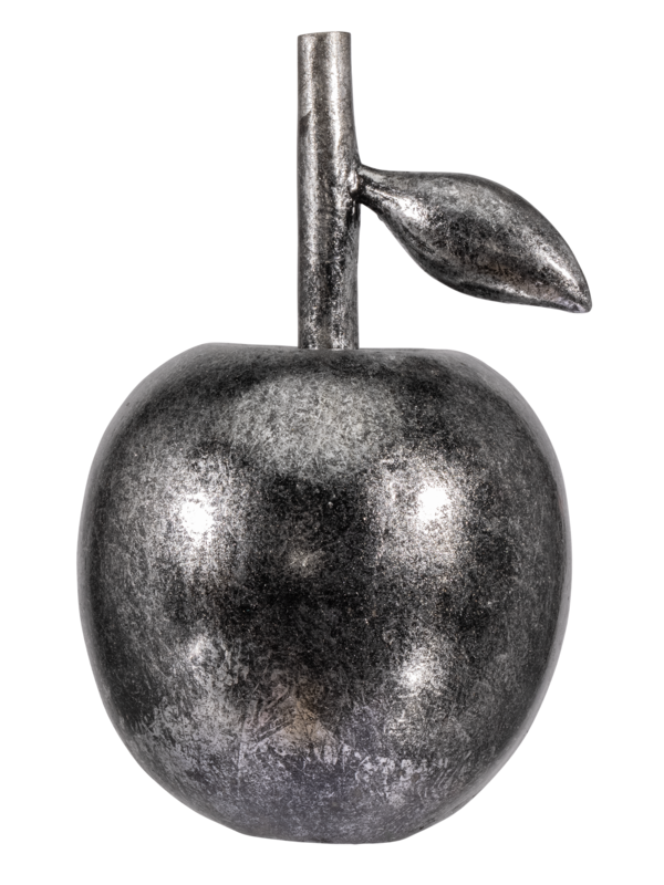In een sfeervol interieur vol zwarte details, velvet en marmer voegen ze ambiance, luxe en een speelse touch toe. Maar ook in andere interieurstijlen vind je er vast een mooi plekje voor. De beelden zijn gemaakt van polystone, een zwaar kunststeen van goede kwaliteit. De appel in zilver heeft een afmeting van 25x15x15 cm.