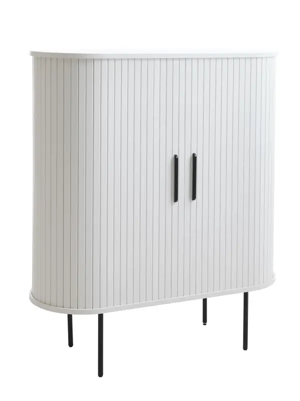 Bergkast Barber is de ideale kast om je spullen in op te bergen. De kast wordt gekenmerkt door zijn ronde hoeken, het lijnenspel en de hoge pootjes die hem tot een stijlvolle en speelse kast maken. Achter de twee schuifdeuren bevinden zich drie planken.De kast is gemaakt van eiken fineer gecombineerd met een zwart stalen pootjes en is verkrijgbaar in naturel, wit, bruin en zwart. Barber is zelf eenvoudig te monteren en daardoor makkelijk voor transport.