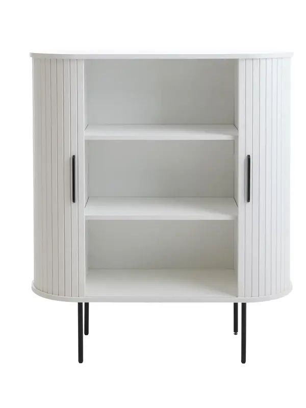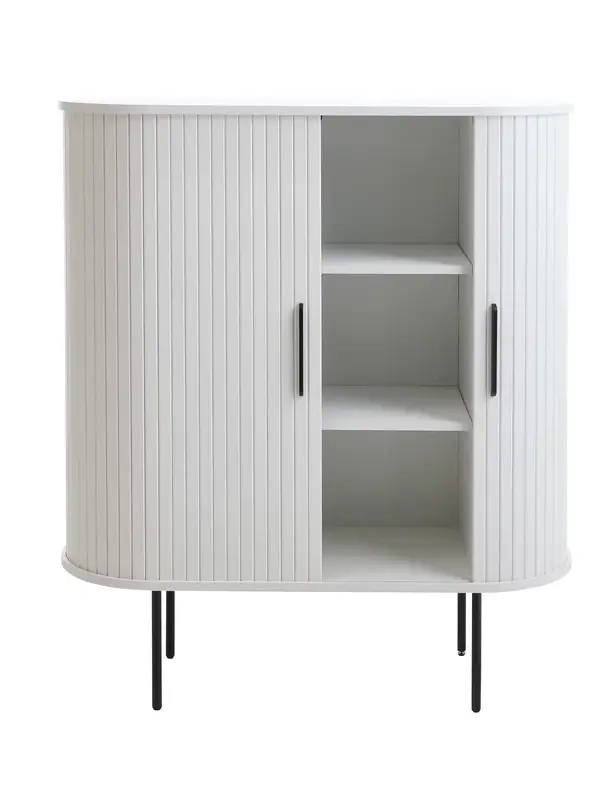 Bergkast Barber is de ideale kast om je spullen in op te bergen. De kast wordt gekenmerkt door zijn ronde hoeken, het lijnenspel en de hoge pootjes die hem tot een stijlvolle en speelse kast maken. Achter de twee schuifdeuren bevinden zich drie planken.De