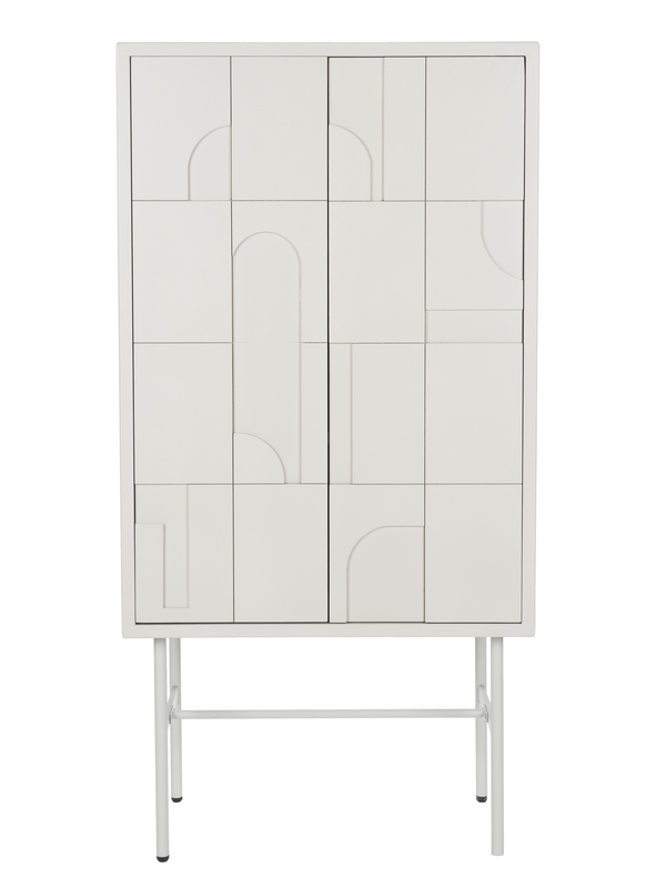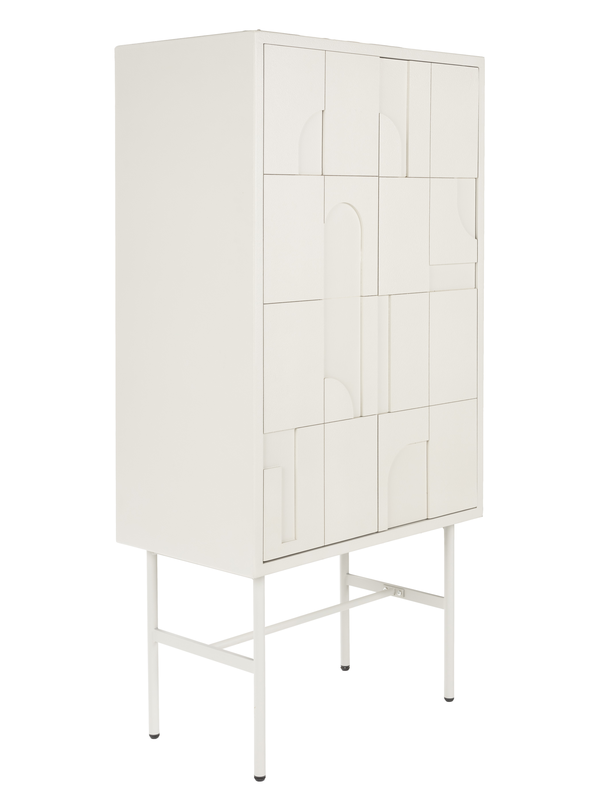 De opvallende 3D-deuren met organische vormen vormen het hart van de Disco-serie. Deze vernieuwende deuren vallen direct op en brengen een unieke dynamiek in je interieur. De zachte off-white tint straalt rust en elegantie uit, waardoor de meubels naadloos in elk interieur tot hun recht komen. Ook verkrijgbaar in een dressoir en nachtkastje. De afmetingen zijn 140x70x40 cm.
