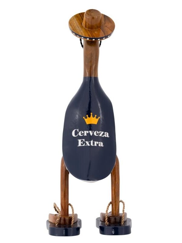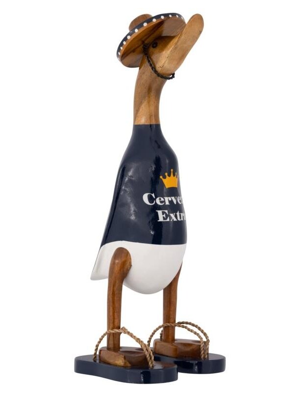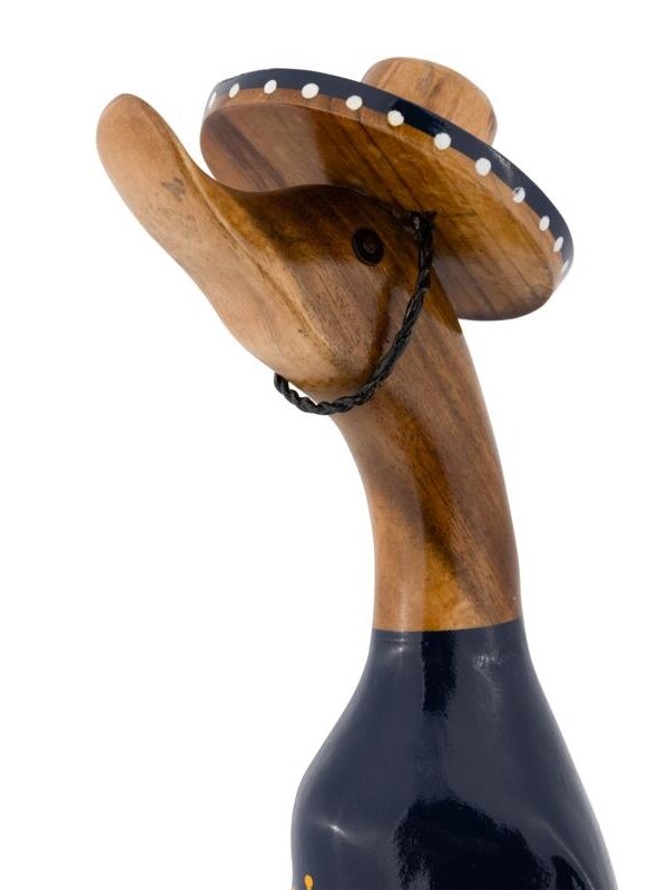 Duck Mexicona zit in de Mexicaanse sferen! Met zijn sombrero op, drinkt Mexicona aardig wat biertjes weg om vervolgens heerlijk te gaan genieten van de zon! Mexicona is een leuk cadeau voor iedere bierliefhebber. Onze Ducks komen in verschillende thema's. Zo heb je voor iedere feestdag, beroep of andere gelegenheid een unieke eend. Plaats ze samen in een vitrinekast van De Troubadour en creëer één grote Duck familie.De meeste meubels uit de collectie van De Troubadour worden handgemaakt in Indonesië. Op één van de reizen naar dit tropische land, werden wij verrast door de veelvuldige aanwezigheid van ‘bebek' - eend in het Indonesisch - , een belangrijk onderdeel van de Indonesische cultuur. Wij werden geïnspireerd en besloten de wortels van de bamboeboom, anders een ongebruikt materiaal, om te toveren in onze eigen Ducks. Het produceren van de eenden gebeurd handmatig door lokale ambachtslieden. Doordat het hout moet drogen is dit een langdurig en nauwkeurig proces. Als de bamboewortels eenmaal op de juiste manier bewerkt zijn, worden alle eenden op unieke wijze beschilderd. Zo is de basis hetzelfde, maar heeft elke Duck toch zijn eigen, authentieke uitstraling. Onze Ducks Collectie maakt je niet alleen vrolijk, maar verrast je ook door de bijzondere oorsprong.