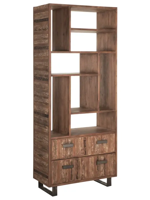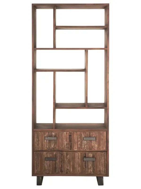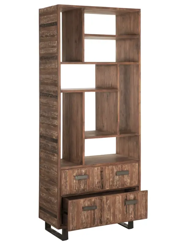 Deze stoere houten kast is voorzien van asymmetrische vakken, waardoor hij een speelse toevoeging is aan je interieur. Stal je mooiste accessoires of favoriete boeken uit in deze robuuste boekenkast. Boekenkast Ubud heeft een afmeting van 190x80x40 cm en