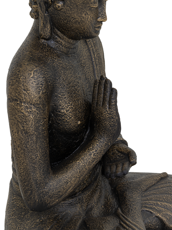 Breng een vleugje zen in je huis met deze betoverende Boeddha. Dit gouden beeld is maarliefst 1.15 meter hoog! Het beeld is ook mooi om in je tuin te plaatsen als decoratie. De Boeddha is gemaakt van fiber cement. Dit unieke beeld straalt een rust uit die elke ruimte kan transformeren.