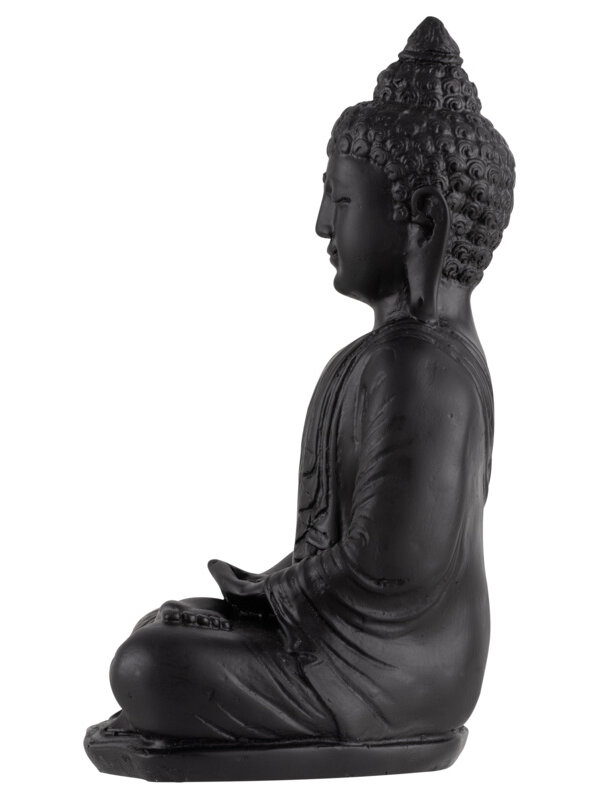 In een sfeervol interieur vol zwarte details, velvet en marmer voegen ze ambiance, luxe en een speelse touch toe. Maar ook in andere interieurstijlen vind je er vast een mooi plekje voor. De beelden zijn gemaakt van polystone, een zwaar kunststeen van goede kwaliteit. De buddha Phuket in mat zwart heeft een afmeting van 32x21x18 cm en is verkrijgbaar in verschillende kleuren.