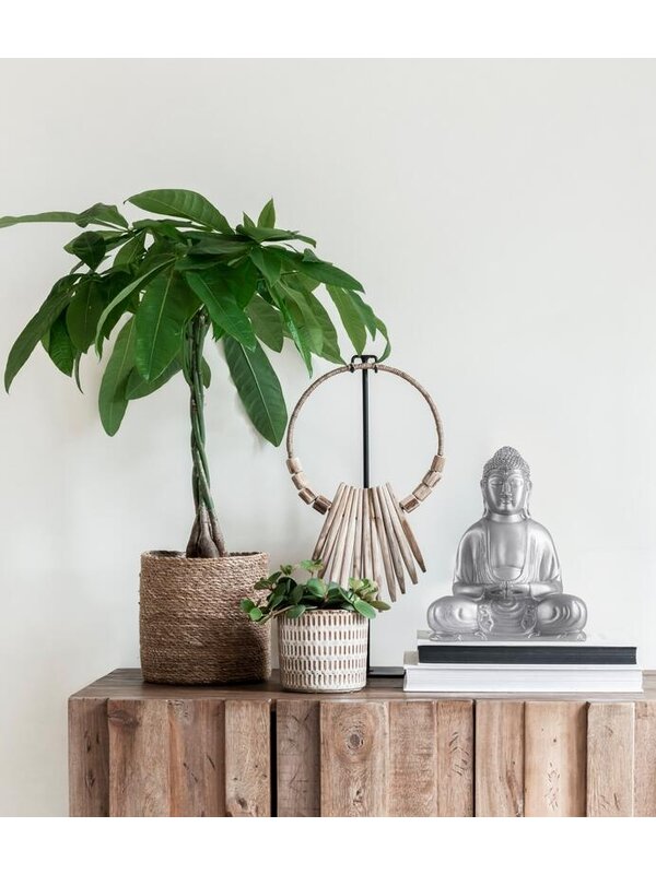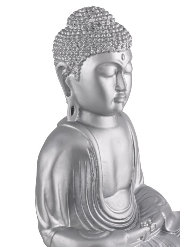In een sfeervol interieur vol zwarte details, velvet en marmer voegen ze ambiance, luxe en een speelse touch toe. Maar, ook in andere interieurstijlen vind je er vast een mooi plekje voor. De beelden zijn gemaakt van polystone, een zwaar kunststeen van goede kwaliteit. De buddha Shanghai in zilver heeft een afmeting van 30x25x15 cm en is verkrijgbaar in verschillende kleuren.