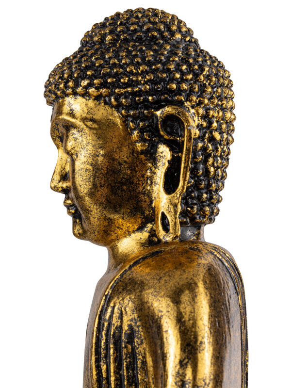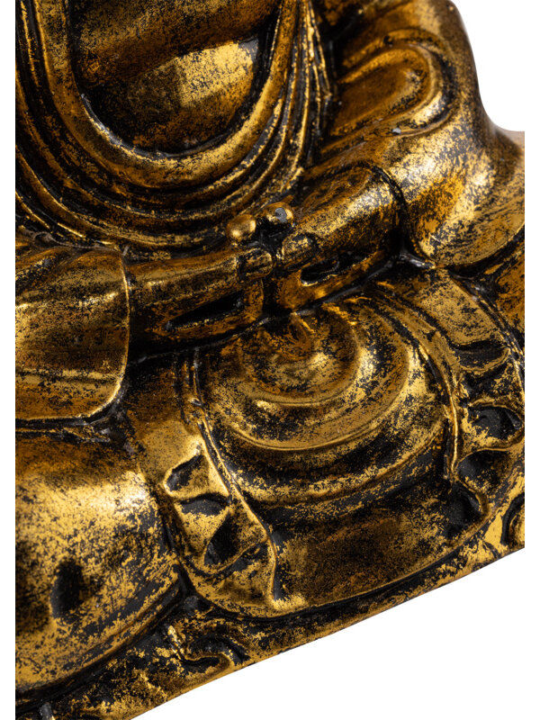 In een sfeervol interieur vol zwarte details, velvet en marmer voegen ze ambiance, luxe en een speelse touch toe. Maar, ook in andere interieurstijlen vind je er vast een mooi plekje voor. De beelden zijn gemaakt van polystone, een zwaar kunststeen van goede kwaliteit. De buddha Shanghai in goud heeft een afmeting van 30x25x15 cm en is verkrijgbaar in verschillende kleuren.