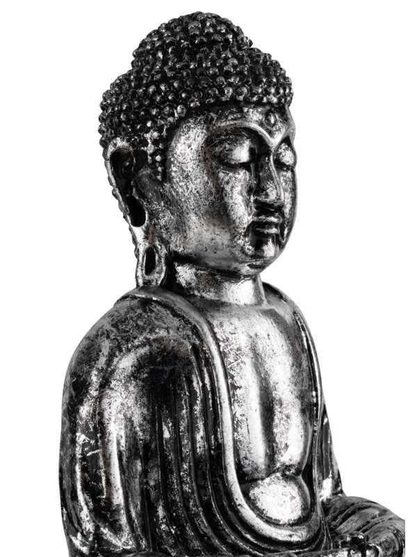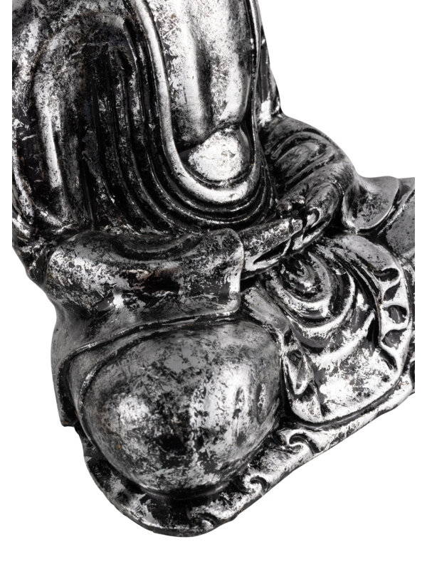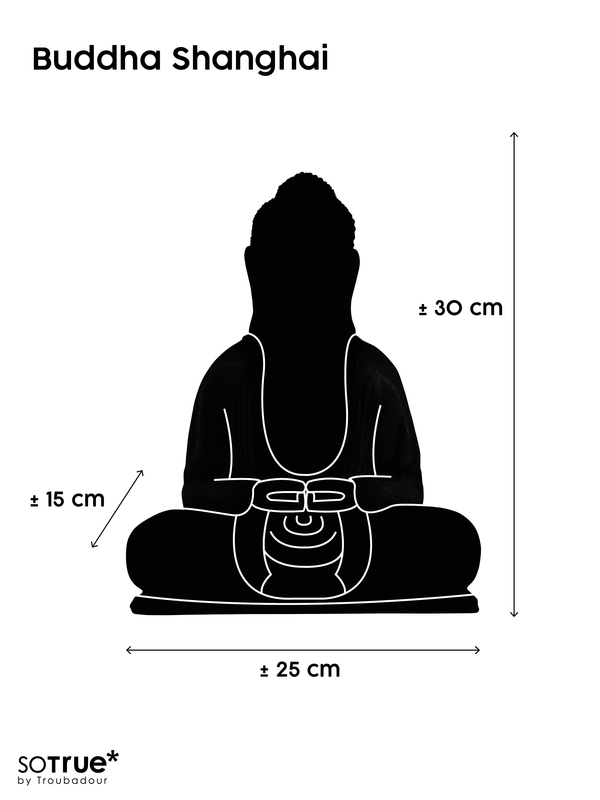 In een sfeervol interieur vol zwarte details, velvet en marmer voegen ze ambiance, luxe en een speelse touch toe. Maar, ook in andere interieurstijlen vind je er vast een mooi plekje voor. De beelden zijn gemaakt van polystone, een zwaar kunststeen van goede kwaliteit. De buddha Shanghai in zilver heeft een afmeting van 30x25x15 cm en is verkrijgbaar in verschillende kleuren.