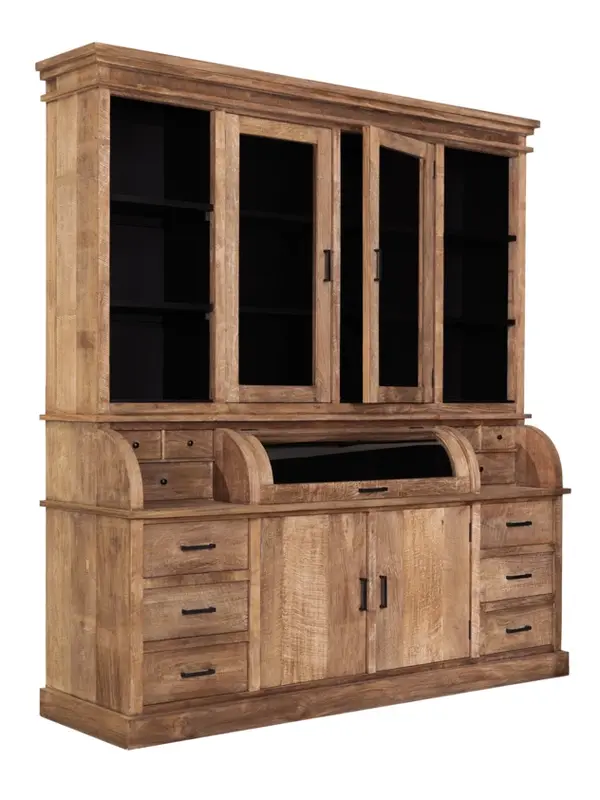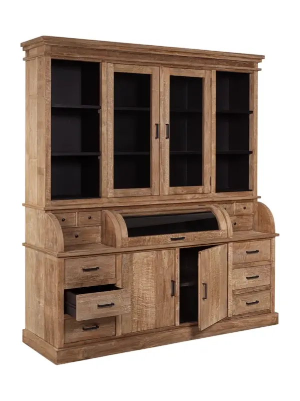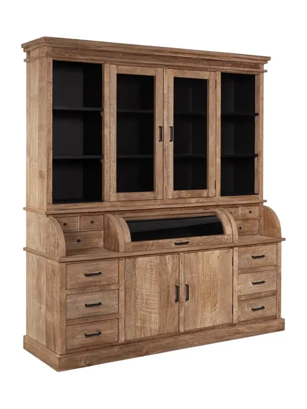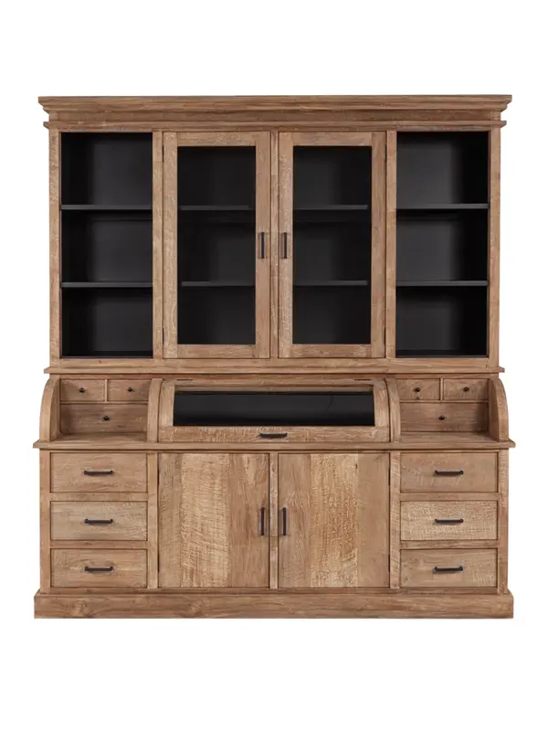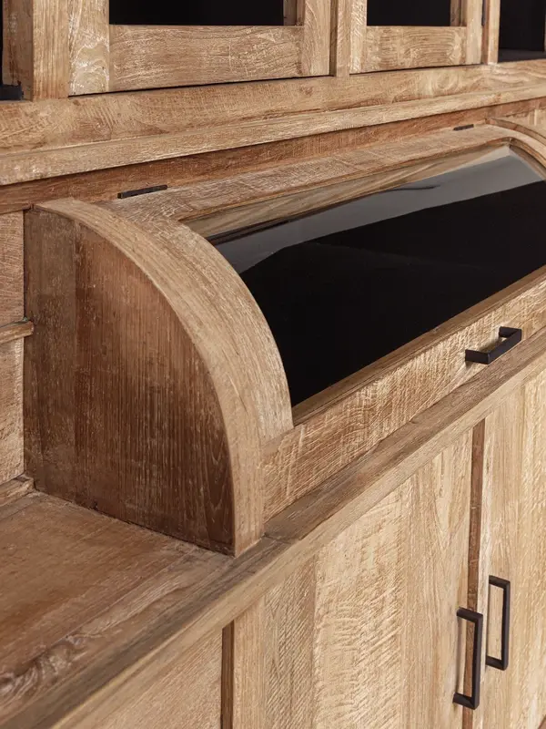 Oud en nieuw komen samen in deze ambachtelijk vervaardigde kast. Hij biedt mogelijkheden tot het tentoonstellen van je mooiste woonaccessoires en servies. Daarnaast is er ook genoeg opbergruimte achter de gesloten deuren. De buffetkast is gemaakt van gere