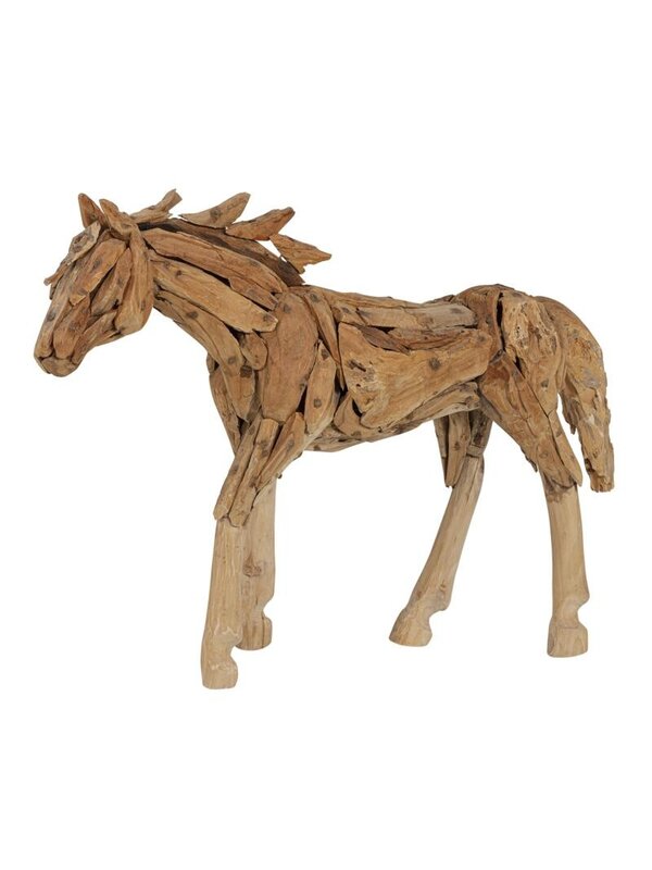 Met Bonfire val je gegarandeerd in de prijzen. En dan niet de eerste plek op een dressuurwedstrijd, maar wél op het gebied van unieke en karakteristieke woondecoratie. Het decoratiepaard is gemaakt van gerecyclede stukken teakhout. Dit maakt Bonfire lekker stoer, duurzaam en ook eens geschikt voor buiten. Waar zet jij hem neer? Het paard is ±110 cm breed en ±80 cm hoog.