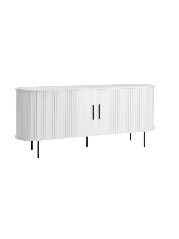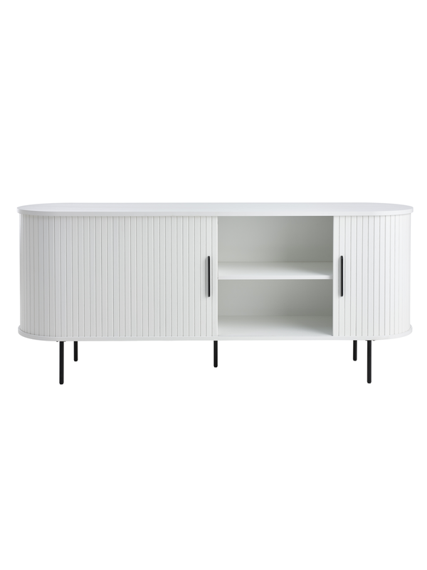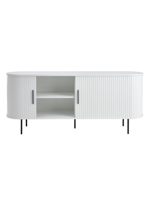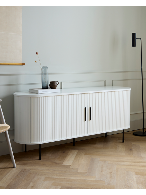 Dressoir Barber is de ideale kast om je spullen in op te bergen. De kast wordt gekenmerkt door zijn ronde hoeken, het lijnenspel en de hoge pootjes die hem tot een stijlvolle en speelse kast maken. Achter de twee schuifdeuren bevinden zich verschillende vakken. De kast is gemaakt van eiken fineer gecombineerd met een zwart stalen pootjes en verkrijgbaar in naturel, wit, bruin en zwart. Barber is zelf eenvoudig te monteren en daardoor makkelijk voor transport.