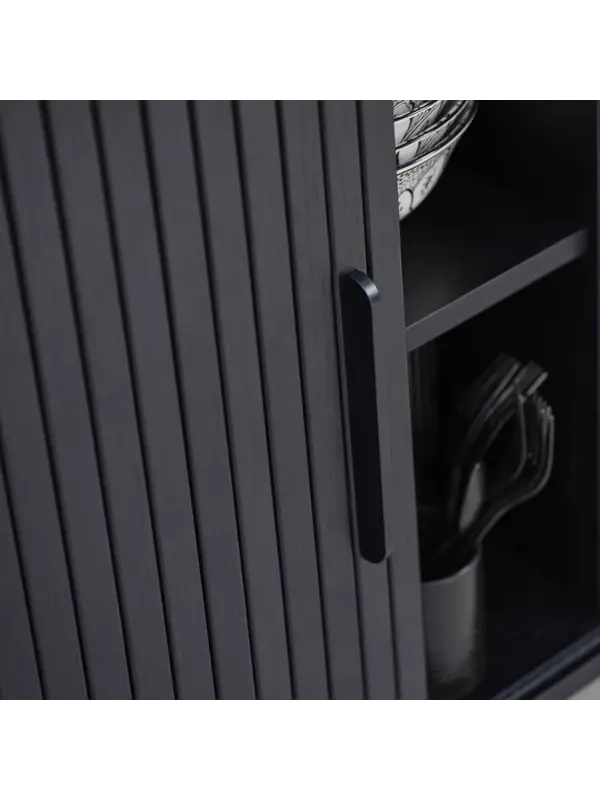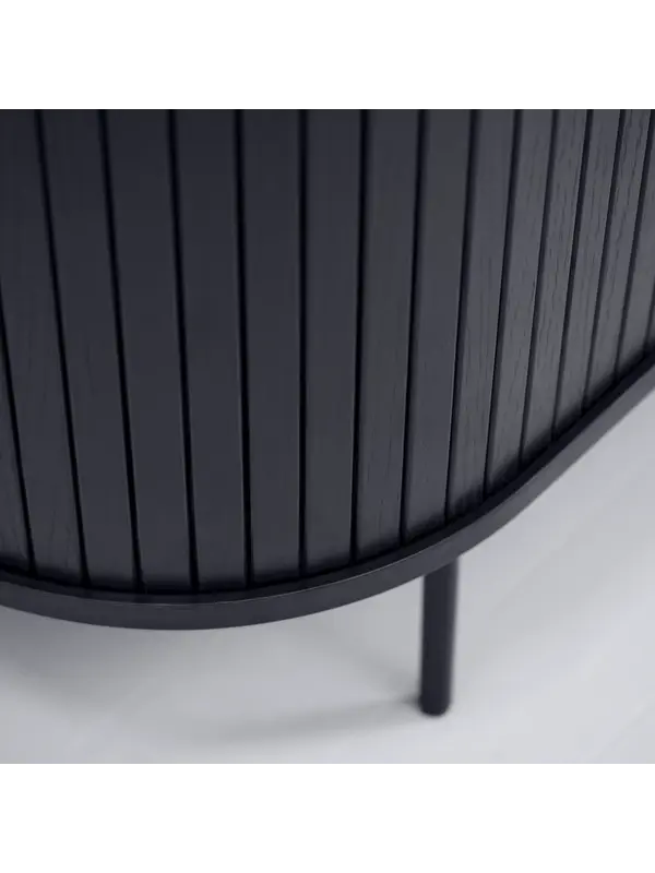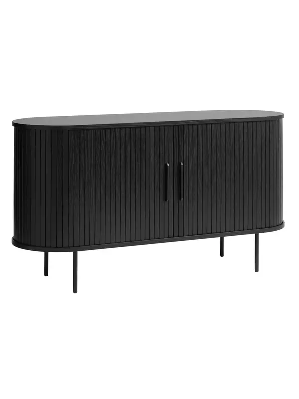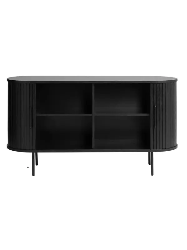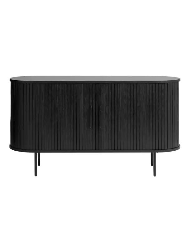 Dressoir Barber is de ideale kast om je spullen in op te bergen. De kast wordt gekenmerkt door zijn ronde hoeken, het lijnenspel en de hoge pootjes die hem tot een stijlvolle en speelse kast maken. Achter de twee schuifdeuren bevinden zich verschillende vakken. De kast is gemaakt van eiken fineer gecombineerd met een zwart stalen pootjes en verkrijgbaar in naturel, wit, bruin en zwart. Barber is zelf eenvoudig te monteren en daardoor makkelijk voor transport.