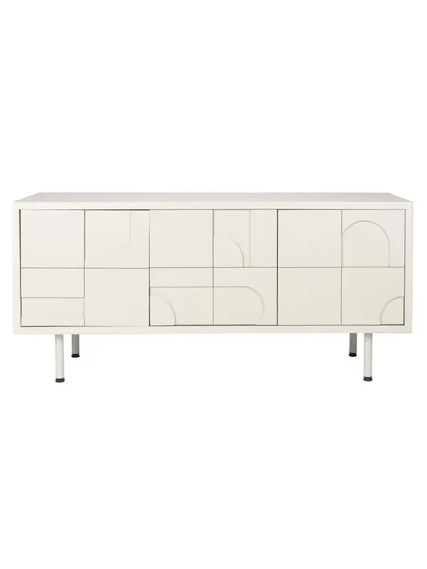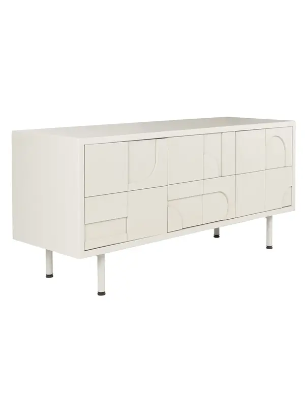 De opvallende 3D-deuren met organische vormen vormen het hart van de Disco-serie. Deze vernieuwende deuren vallen direct op en brengen een unieke dynamiek in je interieur. De zachte off-white tint straalt rust en elegantie uit, waardoor de meubels naadloos in elk interieur tot hun recht komen. Ook verkrijgbaar in een nachtkastje of bergkast. De afmetingen zijn 55x120x40 cm.