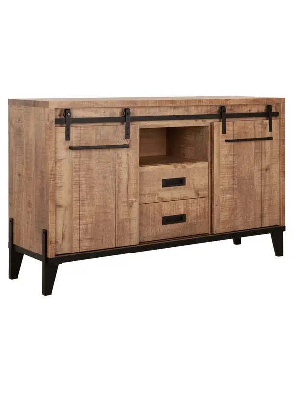 Dressoir Malaga is door het spannende contrast tussen de houtlook planken en het zwarte staal echt een statement in de woonkamer. De houtlook planken zijn gemaakt van hoogwaardig kunststof en bijna niet van echt te onderscheiden. Houtlook is gemakkelijk i