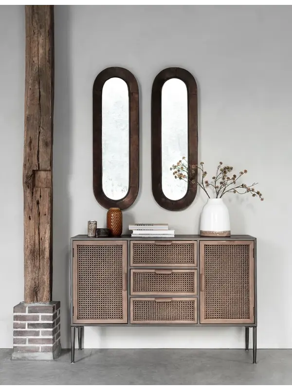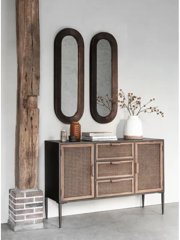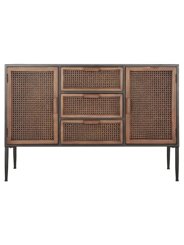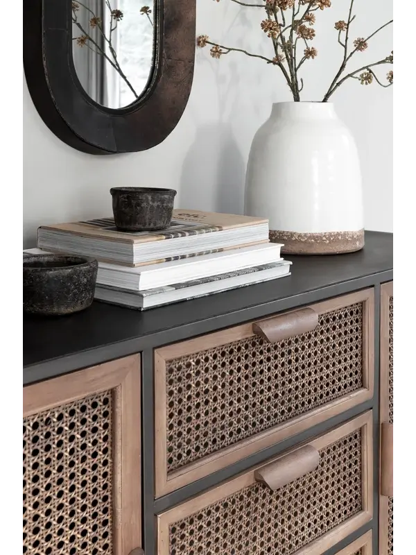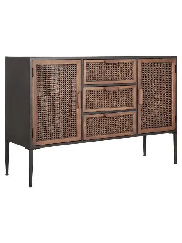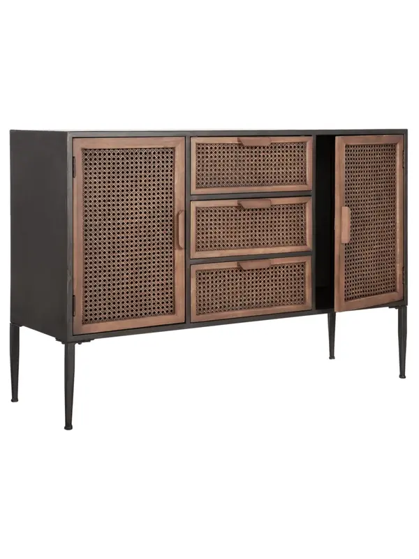 Dressoir Nordic beschikt over alle elementen die een dressoir zou moeten hebben; een stoer stalen frame, mooie webbing deurtjes en een luchtig design. Wat wil je nog meer?