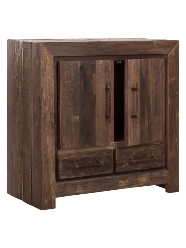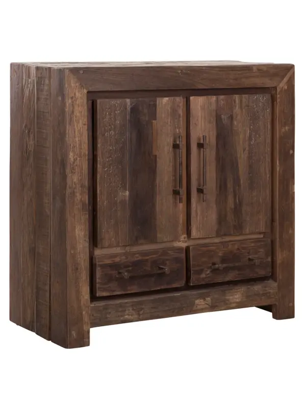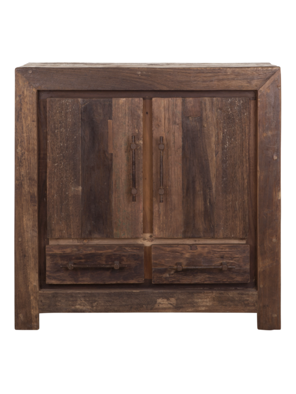 Dressoir Rustico is een sfeervolle en robuuste toevoeging aan je interieur. De kast is gemaakt van verschillende houtsoorten. Dit geeft de kast niet alleen karakter, maar maakt hem ook uniek. Spreekt dit jou aan? Bekijk de hele Rustico collectie op onze website! Dressior Rustico heeft een afmeting van 80x80x40 cm, met 2 deurtjes en 2 lades.