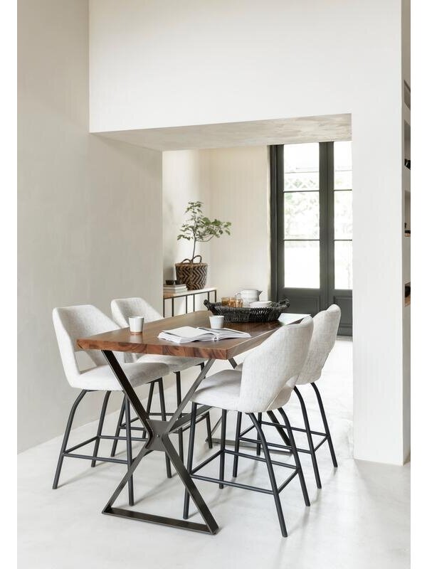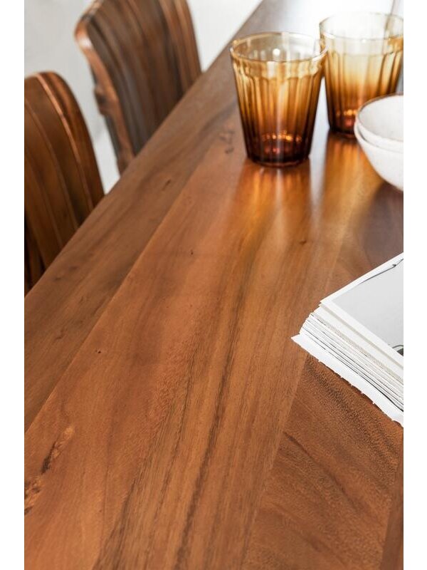 Countertafel Flare is gemaakt van het suarhout. Dit houtsoort is sterk, duurzaam en bovendien prachtig dankzij de talloze kleurverschillen en patronen. Suarhout heeft vaak een chocoladebruine kern, omringt door vlammende kleuren lichtbruin en geel. Het frame van de countertafel is gemaakt van zwart metaal met een gouden gloed. Dit complimenteert het warme suarhout en zorgt ervoor dat de countertafel een gezellige, huiselijke uitstraling krijgt. Countertafel Flare heeft een afmeting van 90x150x80 cm.