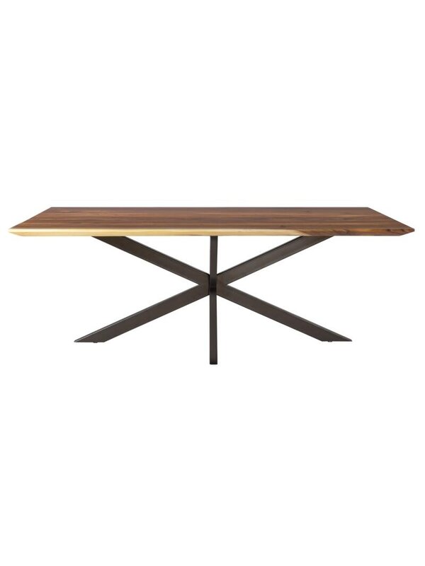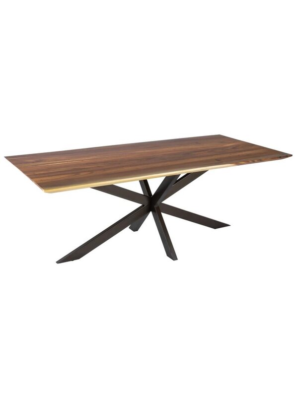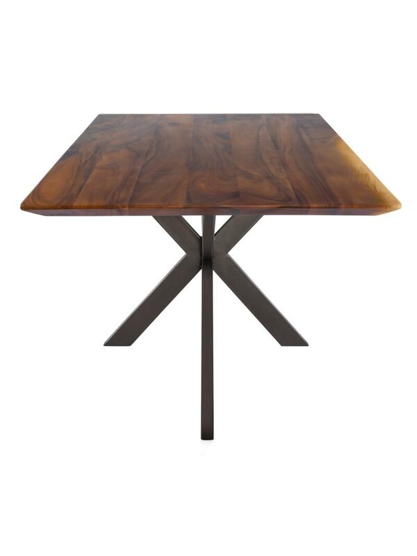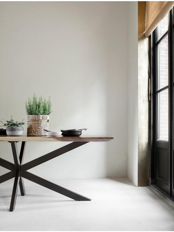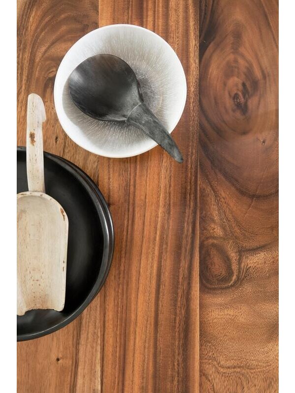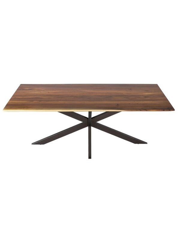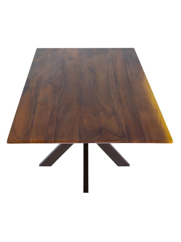 Eettafel Flare is gemaakt van het suarhout. Deze houtsoort is sterk, duurzaam en bovendien prachtig dankzij de talloze kleurverschillen en patronen. Suarhout heeft vaak een chocoladebruine kern, omringt door vlammende kleuren lichtbruin en geel. Het frame van de eettafel is gemaakt van zwart metaal met een gouden gloed. Dit complimenteert het warme suarhout en zorgt ervoor dat de eettafel een gezellige, huiselijke uitstraling krijgt. Eettafel Flare heeft een afmeting van 78x210x100 cm.