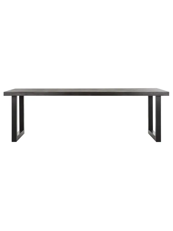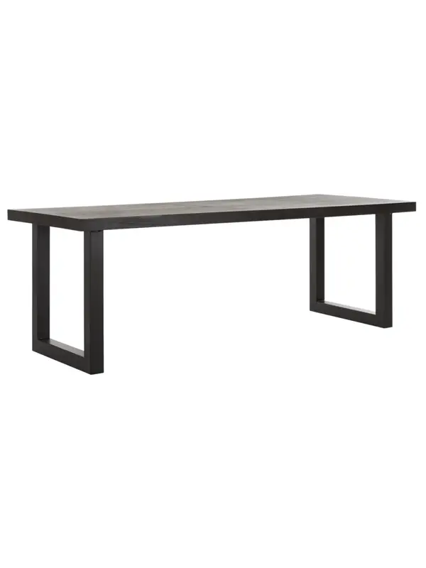 Eettafel Night heeft een zwartgelakt, houten blad dat fantastisch combineert met de robuuste, stalen u-poot. Dankzij de zwarte kleur en het neutrale uiterlijk van eettafel Night combineer je hem gemakkelijk met verschillende kleuren, materialen en interieurstijlen. Night zou bijvoorbeeld goed staan met een luchtig stoeltje in een felle kleur velvetstof, maar ook met een klassieke kuipstoel in cognackleurig leder. Voor ieder wat wils! Eettafel Night is verkrijgbaar in de maten 78x200x90cm, 78x225x90 cm en 78x250x90 cm.