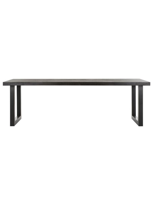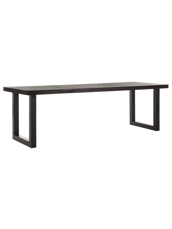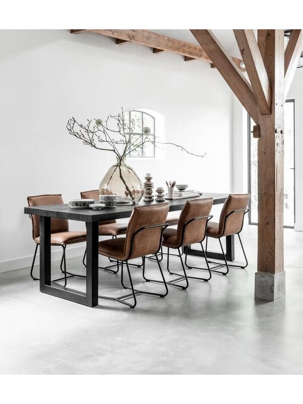 Eettafel Night heeft een zwartgelakt, houten blad dat fantastisch combineert met de robuuste, stalen u-poot. Dankzij de zwarte kleur en het neutrale uiterlijk van eettafel Night combineer je hem gemakkelijk met verschillende kleuren, materialen en interie