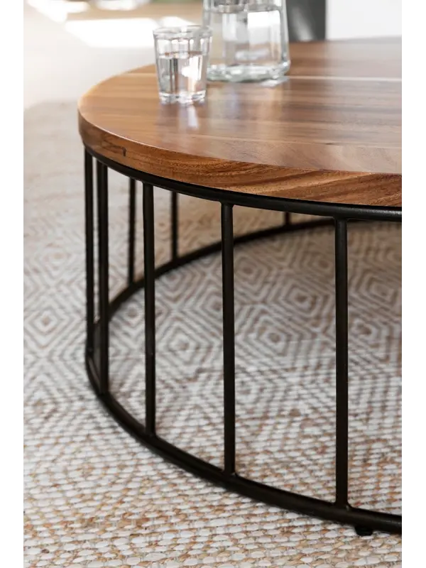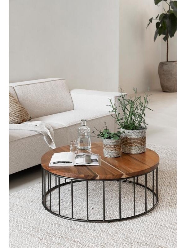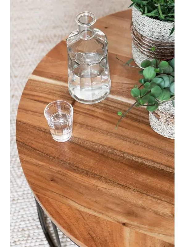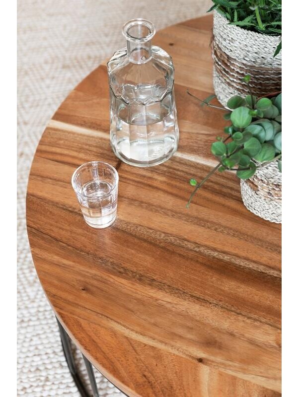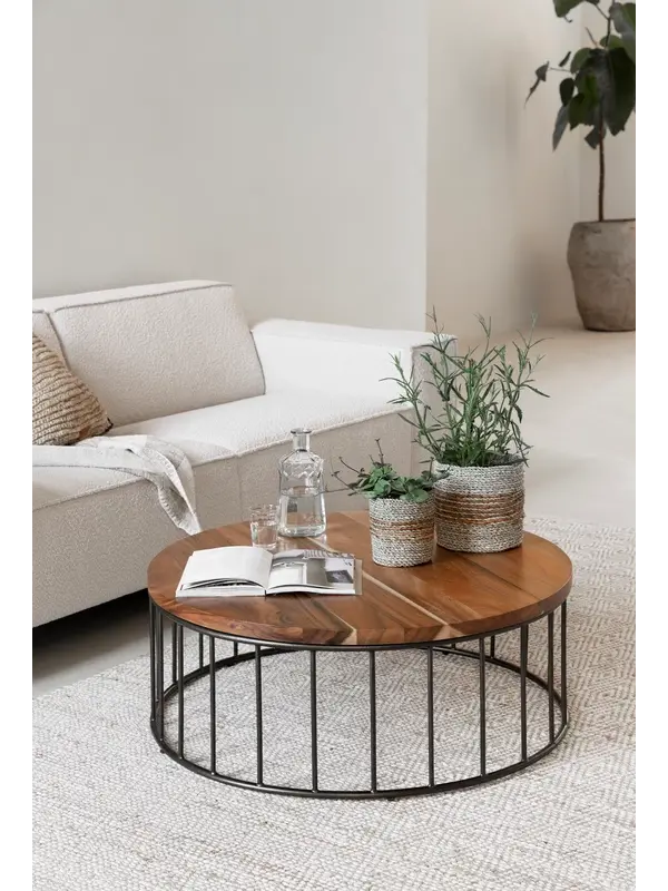 Salontafel Flare is gemaakt van het suarhout. Deze houtsoort is sterk, duurzaam en bovendien prachtig dankzij de talloze kleurverschillen en patronen. Suarhout heeft vaak een chocoladebruine kern, omringt door vlammende kleuren lichtbruin en geel. Het frame van de salontafel is gemaakt van zwart metaal met een gouden gloed. Dit complimenteert het warme suarhout en zorgt ervoor dat de salontafel een gezellige, huiselijke uitstraling krijgt. Salontafel Flare heeft een afmeting van 35x90x90 cm.
