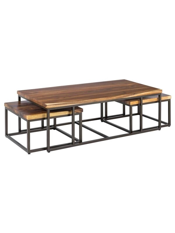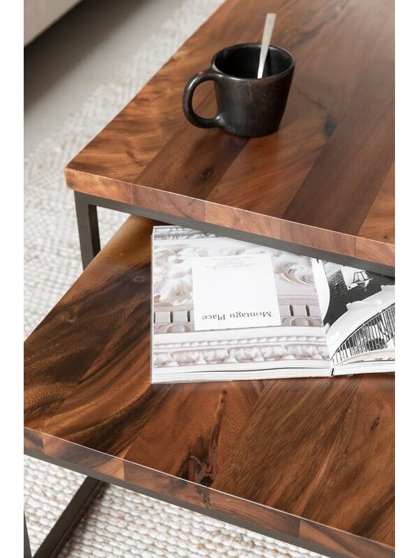Salontafel Flare is gemaakt van het suarhout. Deze houtsoort is sterk, duurzaam en bovendien prachtig dankzij de talloze kleurverschillen en patronen. Suarhout heeft vaak een chocoladebruine kern, omringt door vlammende kleuren lichtbruin en geel. Het frame van de salontafel is gemaakt van zwart metaal met een gouden gloed. Dit complimenteert het warme suarhout en zorgt ervoor dat de salontafel een gezellige, huiselijke uitstraling krijgt. Salontafel Flare heeft een afmeting van 40x120x60 cm.