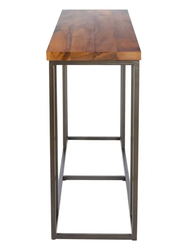 Wandtafel Flare is gemaakt van het suarhout. Deze houtsoort is sterk, duurzaam en bovendien prachtig dankzij de talloze kleurverschillen en patronen. Suarhout heeft vaak een chocoladebruine kern, omringt door vlammende kleuren lichtbruin en geel. Het frame van de wandtafel is gemaakt van zwart metaal met een gouden gloed. Dit complimenteert het warme suarhout en zorgt ervoor dat de wandtafel een gezellige, huiselijke uitstraling krijgt. Wandtafel Flare heeft een afmeting van 75x150x35 cm.
