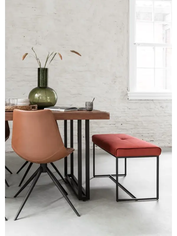 Deze moderne eetkamerbank heeft een afmeting van 48x82x43 cm. De bank komt in twee verschillende stoffen en heeft een zeer comfortabele zitting. Het luchtige, stalen onderstel maakt deze trendy eetkamerbank helemaal af.