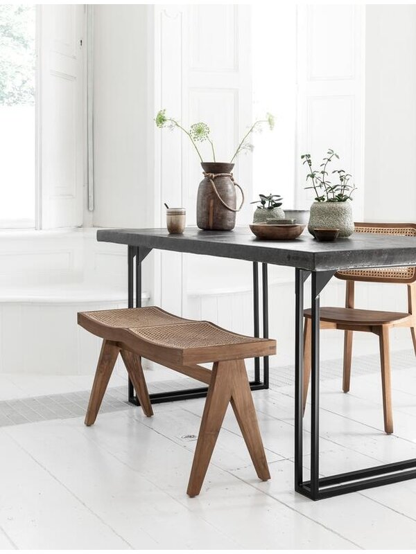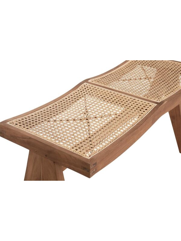 Bankje Odense is gemaakt van naturel teakhout, en heeft twee zittingen van hand gevlochten webbing, gemaakt van rattan. Dit geeft een subtiele retro look waarin de naturel kleuren mooi in elkaar overlopen. En met het bijpassende krukje en eetkamerstoel in naturel en zwart was dineren nog nooit zo leuk. Bankje Odense heeft een afmeting van 46x88x35 cm en is alleen te bestellen via onze website.