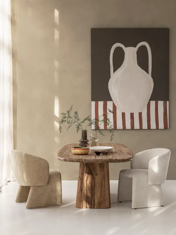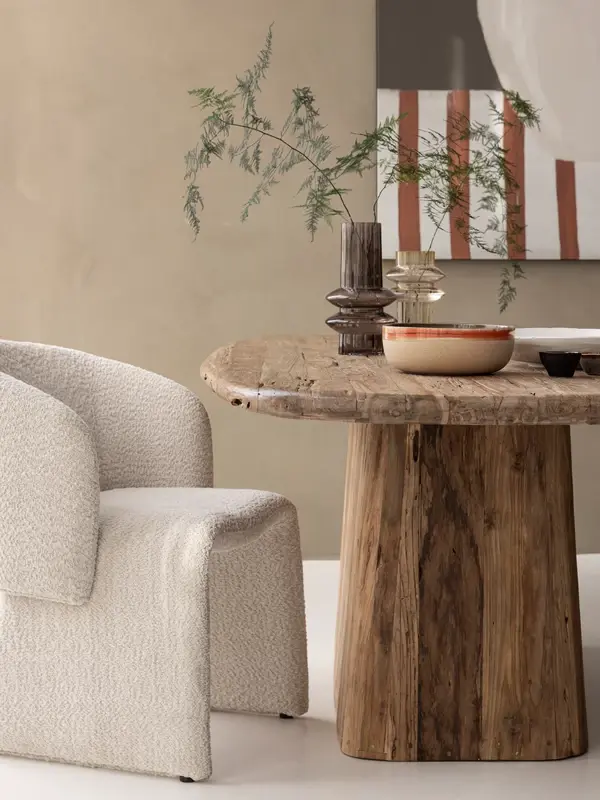 Voeg een vleugje stijl en comfort toe aan je eetkamer met eetkamerstoel Donna. De ronde vormen creëren een elegant silhouet en bieden tegelijkertijd ultiem zitcomfort. De stoel is bekleed met zachte, hoogwaardige bouclé stof in een neutrale tint, wat bijdraagt aan een tijdloze uitstraling. Een opvallend kenmerk van deze stoel is dat de poten volledig zijn bekleed met dezelfde bouclé stof als de zitting en rugleuning. Dit design geeft de stoel een luxe uitstraling en maakt hem tot een echte eyecatcher in elke ruimte.