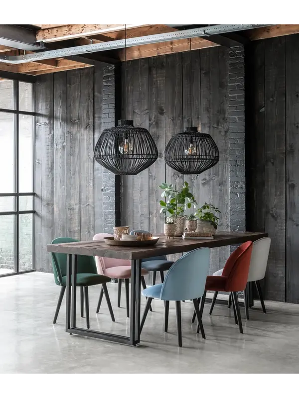 Eetkamerstoel Flow is bekleed met een zachte velvet stof wat zorgt voor warmte en sfeer in je eethoek. Verkrijgbaar in de kleuren wijnrood, roze, blauw, licht- en donkergrijs. De poten zijn zwart. Combineer de verschillende kleuren met elkaar voor een speels effect! De ideale eetkamerstoel met een luchtig ontwerp, waardoor hij ook in kleinere ruimtes goed tot zijn recht komt. Eetkamerstoel Flow heeft een afmeting van 83x53x53 cm. De eetkamerstoel heeft een zithoogte van 46 cm.