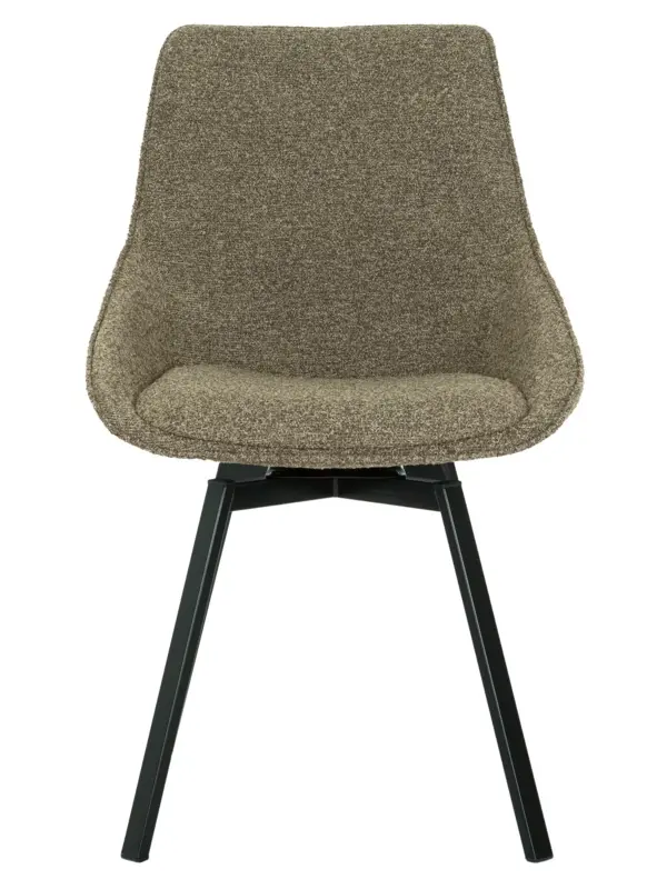 Met eetkamerstoel Glamour kan je alle kanten op. De draaibare zitting geeft extra comfort en daardoor is hij ook ideaal als bureaustoel. Naast velvet en corduroy is bouclé nu trending. De stof met lusjes is stevig maar ook elegant, en was daarom een grote favoriet van Coco Chanel. Mix de verschillende kleuren met elkaar voor een speels effect aan je eettafel. Eetkamerstoel Glamour is draaibaar.