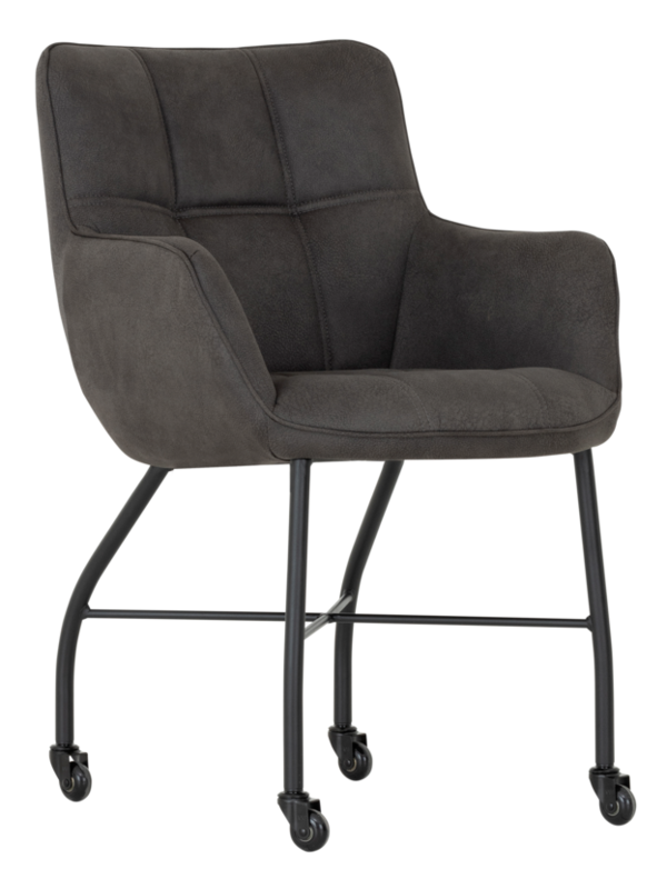 Eetkamerstoel Max is super handig met zijn parketwielen en daardoor niet alleen ideaal aan de eettafel maar ook aan een bureau bijvoorbeeld. De stof is van microvezelstof in een soort lederlook waardoor het makkelijk te onderhouden is. Max is in drie verschillende kleuren verkrijgbaar; zand, taupe en antraciet.
