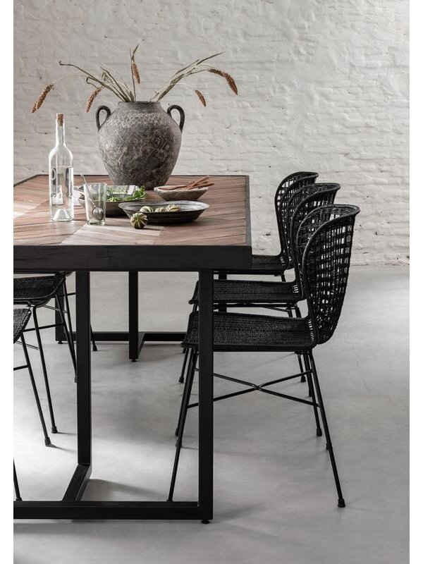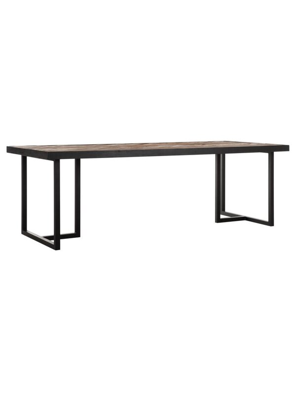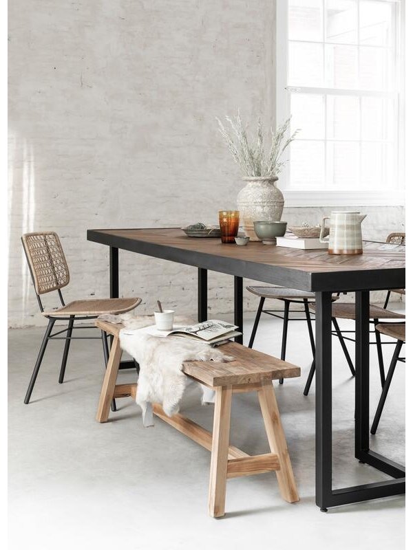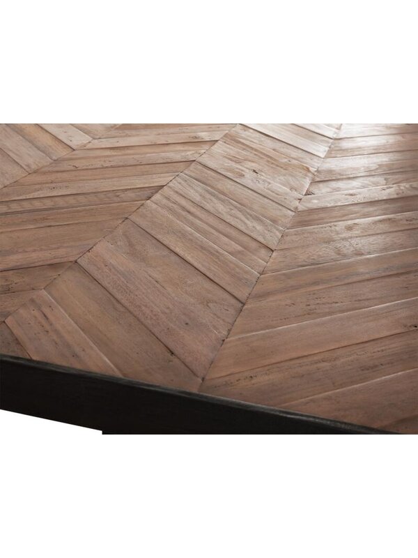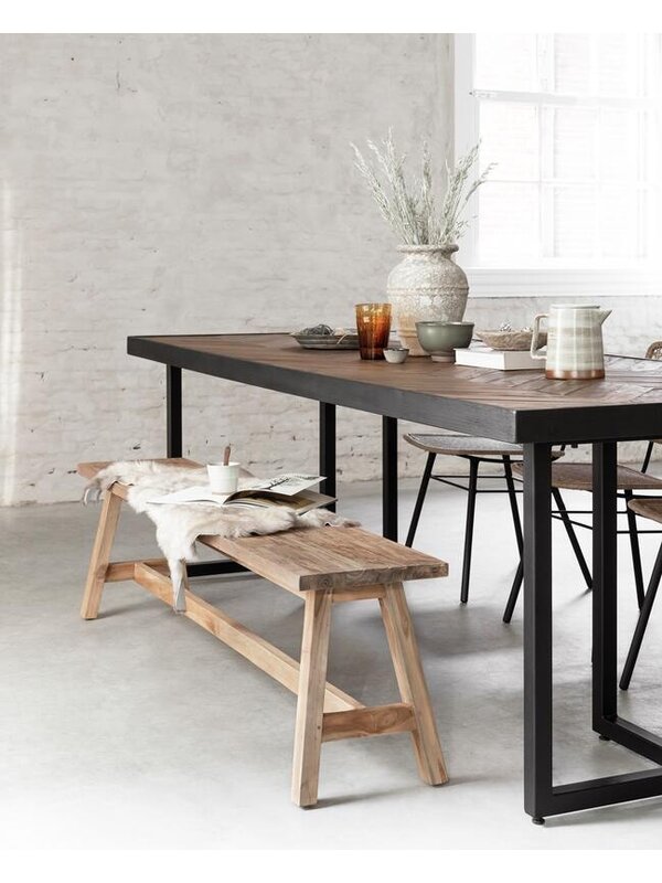 Eettafel Criss Cross is gemaakt van teakhout en valt op dankzij het stijlvolle visgraat patroon. Door het prachtige hout en de stalen afwerking is de eettafel een plezier om naar te kijken, én urenlang aan te dineren of werken. DTP Home eettafel Criss Cross heeft een afmeting van 78x240x100 cm.