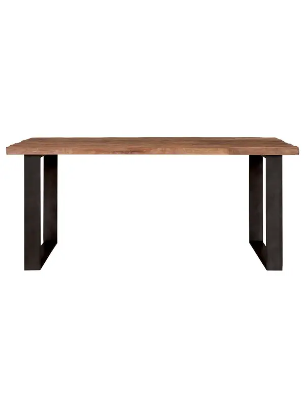Eettafel Flores is gemaakt van gerecycled teakhout, wat ervoor zorgt dat elke tafel zijn eigen unieke uitstraling heeft. De kopse kanten van het blad zijn op een speelse manier afgewerkt. In combinatie met de zwarte stalen U-poten, past deze tafel goed th