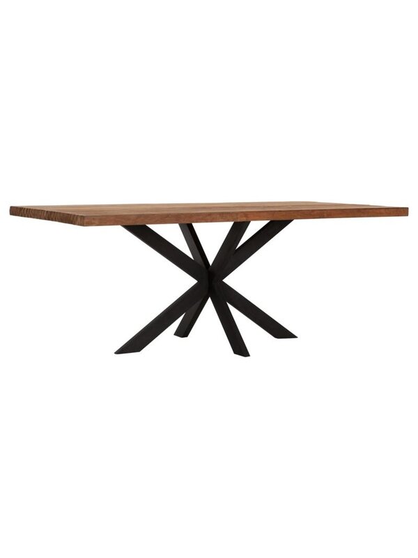 Een eettafel gemaakt van teakhout in combinatie met een stalen spinpoot, waardoor je met veel mensen makkelijk aan tafel kan zitten. Verkrijgbaar in twee maten.