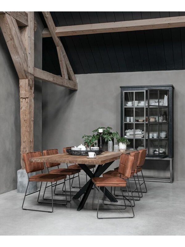 Eettafel Komodo is gemaakt van gerecycled teakhout, wat ervoor zorgt dat elke tafel zijn eigen unieke uitstraling heeft. De kopse kanten van het blad zijn op een speelse manier afgewerkt. In combinatie met de zwarte stalen spinpoot, past deze tafel goed thuis in een industrieel interieur.