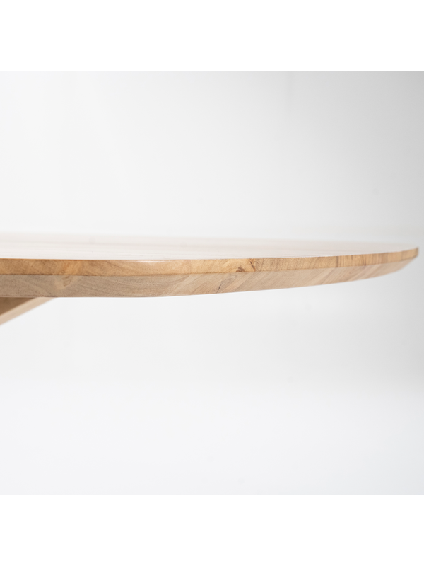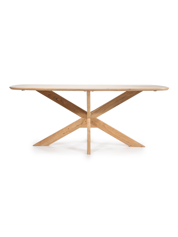 De Deense ovale eettafel combineert een rustieke uitstraling met modern design. Zowel het blad als het spinpoot onderstel zijn volledig vervaardigd van duurzaam mangohout, wat zorgt voor optimale stabiliteit en ruimte. De tafel is afgewerkt met een transparante beschermlak. Met een hoogte van 73,5 cm tussen de vloer en de onderkant van het blad biedt deze tafel zowel comfort als stijl. De afmetingen zijn 76x200x100 cm.