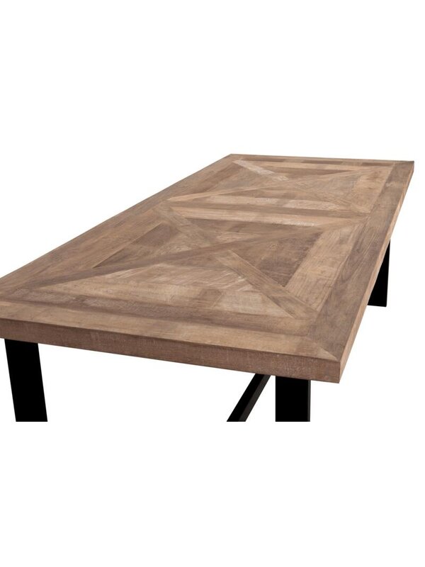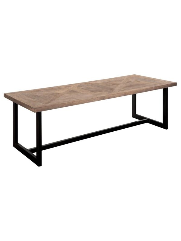 Eettafel Parket heeft een tafelblad van gerecycled teakhout. Niet alleen duurzaam, maar ook robuust en mega trendy. Het onderstel is gemaakt van stevig metaal en bestaat uit twee u-poten die over de lengte van de tafel verbonden zijn. Doordat het materiaal van deze tijdloze eettafel van natuurlijke oorsprong is, heeft iedere tafel net een andere aanblik. Des te leuker, zo heb je altijd een uniek item in huis. De eettafel is verkrijgbaar in verschillende formaten en ook in een zwarte kleur.