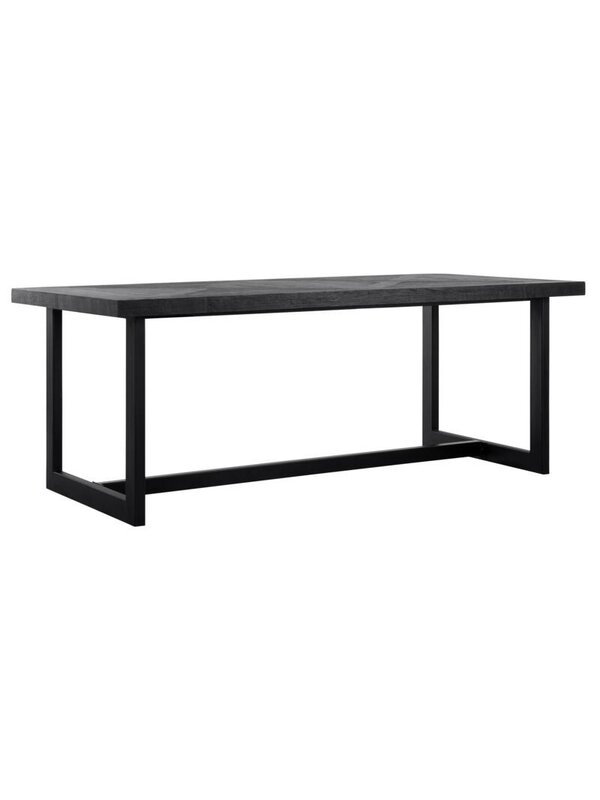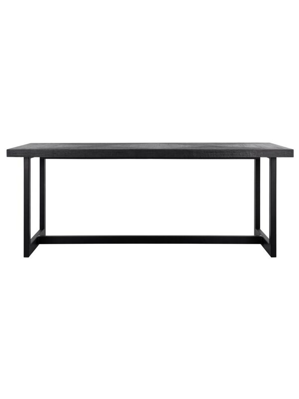 Eettafel Parket heeft een zwart tafelblad van gerecycled teakhout. Niet alleen duurzaam, maar ook robuust en mega trendy. Het onderstel is gemaakt van stevig metaal en bestaat uit twee u-poten die over de lengte van de tafel verbonden zijn. Doordat het materiaal van deze tijdloze eettafel van natuurlijke oorsprong is, heeft iedere tafel net een andere aanblik. Des te leuker, zo heb je altijd een uniek item in huis. De eettafel is verkrijgbaar in verschillende formaten en ook in naturel.