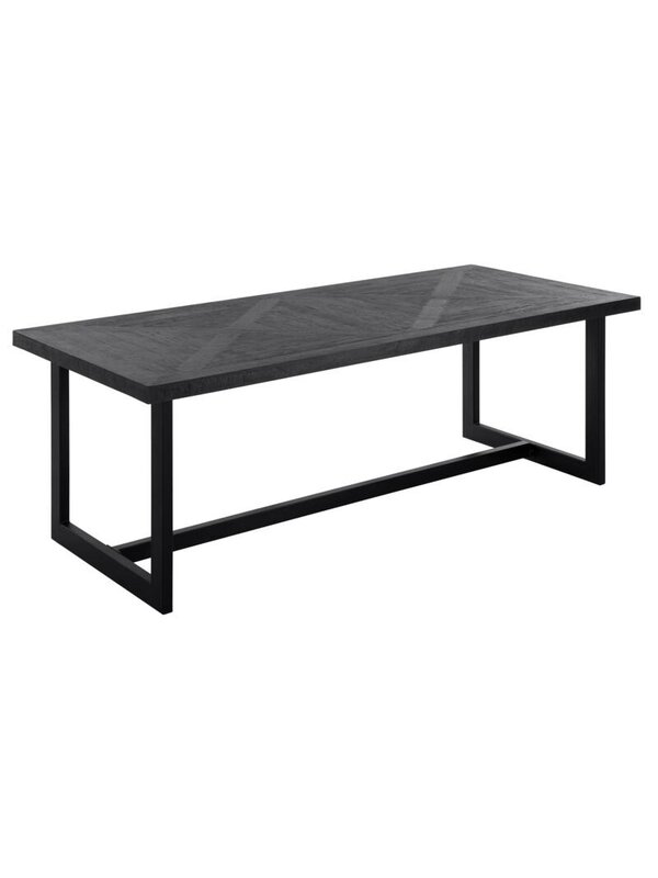 Eettafel Parket heeft een zwart tafelblad van gerecycled teakhout. Niet alleen duurzaam, maar ook robuust en mega trendy. Het onderstel is gemaakt van stevig metaal en bestaat uit twee u-poten die over de lengte van de tafel verbonden zijn. Doordat het materiaal van deze tijdloze eettafel van natuurlijke oorsprong is, heeft iedere tafel net een andere aanblik. Des te leuker, zo heb je altijd een uniek item in huis. De eettafel is verkrijgbaar in verschillende formaten en ook in naturel.