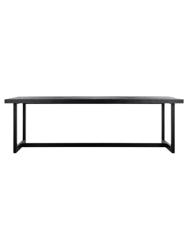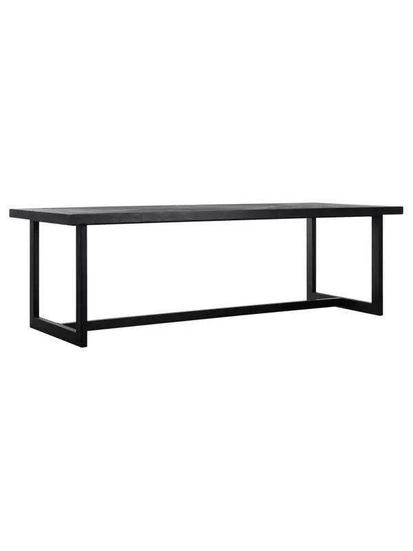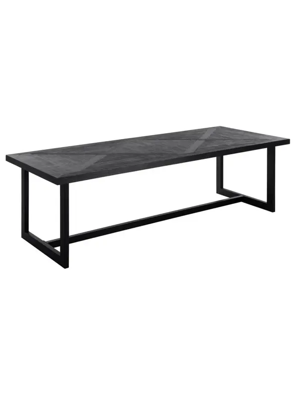 Eettafel Parket heeft een zwart tafelblad van gerecycled teakhout. Niet alleen duurzaam, maar ook robuust en mega trendy. Het onderstel is gemaakt van stevig metaal en bestaat uit twee u-poten die over de lengte van de tafel verbonden zijn. Doordat het ma