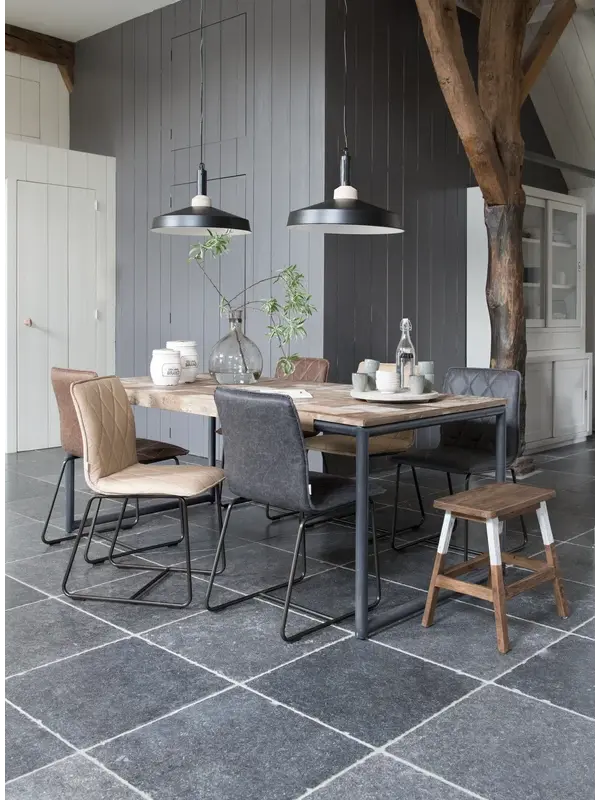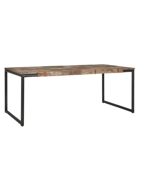 Eettafel Pure heeft een afmeting van 78x225x100 cm en is hiermee groot genoeg voor ongeveer 8 personen. Het tafelblad van de eettafel is gemaakt van gerecycled teakhout, afgewerkt met een verweerde verflaag. Pure wordt gedragen door een in zwart gepoedercoat buizenframe. De mix van materialen maakt van eettafel Pure de perfecte toevoeging aan ieder industrieel interieur.