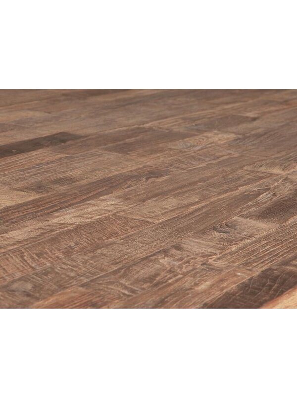 Eettafel Stripes heeft een blad gemaakt van gerecycled teakhout wat ervoor zorgt dat elke tafel zijn eigen unieke uitstraling heeft. Het stalen frame zorgt voor genoeg ruimte voor de eetkamerstoelen. Teakhout is een vettige houtsoort en heeft daardoor geen enkel onderhoud nodig. De afmeting van deze tafel is 78x200x90 cm. Liever een andere maat? Dat kan!