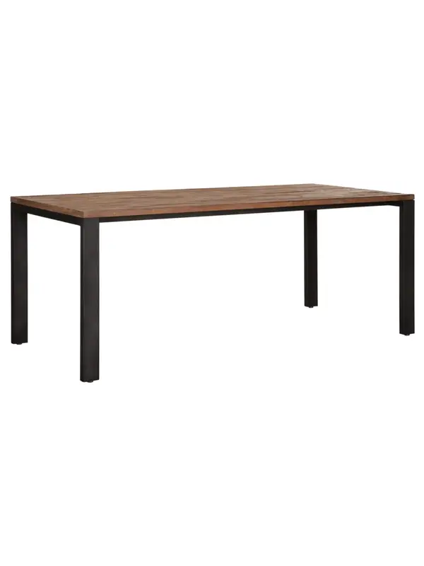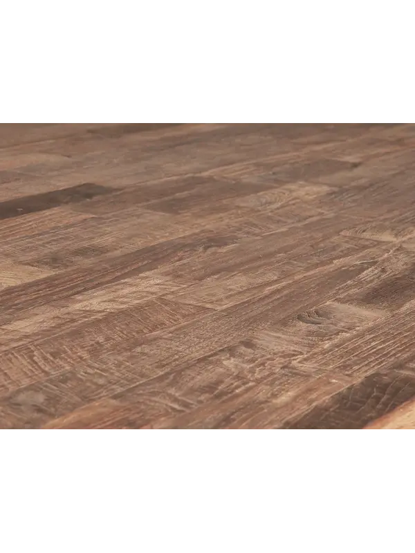 Eettafel Stripes heeft een blad gemaakt van gerecycled teakhout wat ervoor zorgt dat elke tafel zijn eigen unieke uitstraling heeft. Het stalen frame zorgt voor genoeg ruimte voor de eetkamerstoelen. Teakhout is een vettige houtsoort en heeft daardoor gee