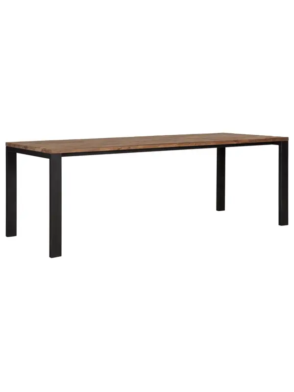 Eettafel Stripes heeft een blad gemaakt van gerecycled teakhout wat ervoor zorgt dat elke tafel zijn eigen unieke uitstraling heeft. Het stalen frame zorgt voor genoeg ruimte voor de eetkamerstoelen. Teakhout is een vettige houtsoort en heeft daardoor geen enkel onderhoud nodig. Liever een andere maat? Dat kan!