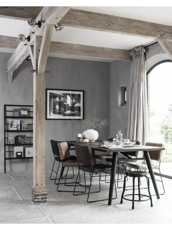 Eettafel The Confrontation heeft een stoere, doch warme uitstraling. Het blad van de eettafel is gemaakt van gerecycled iepenhout. Dit is een sterke houtsoort die je zich kenmerkt dankzij de grote nerven en fraaie kleurverschillen. De eettafel is verder a
