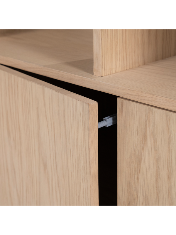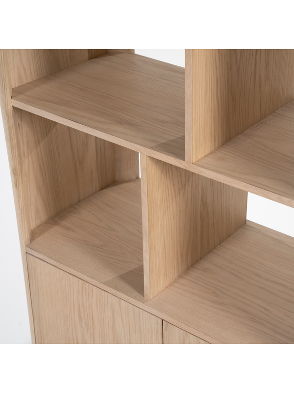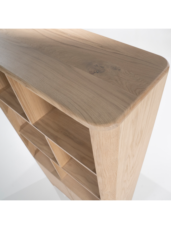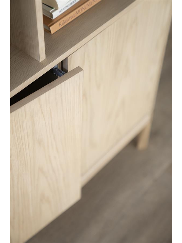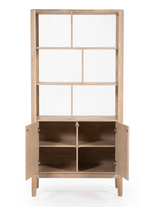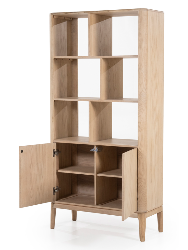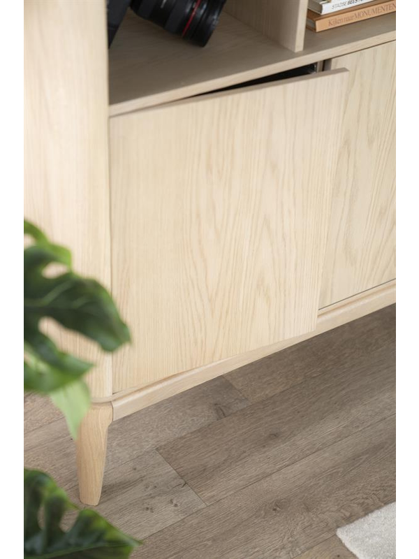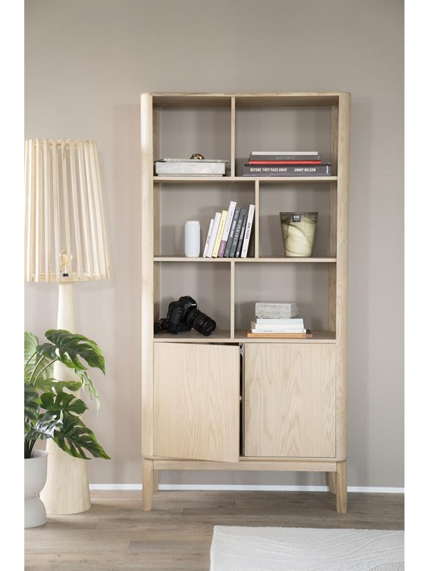Boekenkast Harvey van het Nederlandse merk Eleonora heeft een Scandinavisch design. De kast is gemaakt van eikenhout en afgewerkt met een transparante laklaag. De greeploze deuren, met daarachter vier vakken, bieden genoeg opbergruimte. En met zes open vakken is er ook plek om je mooiste spullen tentoon te stellen. De hoge poten en afgeronde hoeken geven de kast een luchtige en zachte uitstraling. Combineer boekenkast Harvey met de andere meubels uit de Harvey serie.