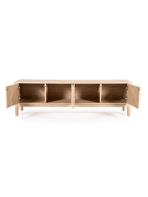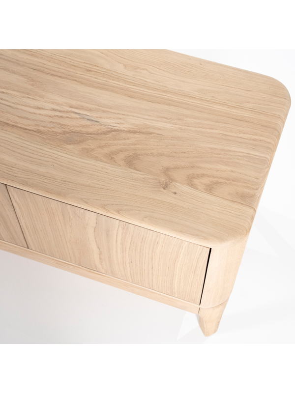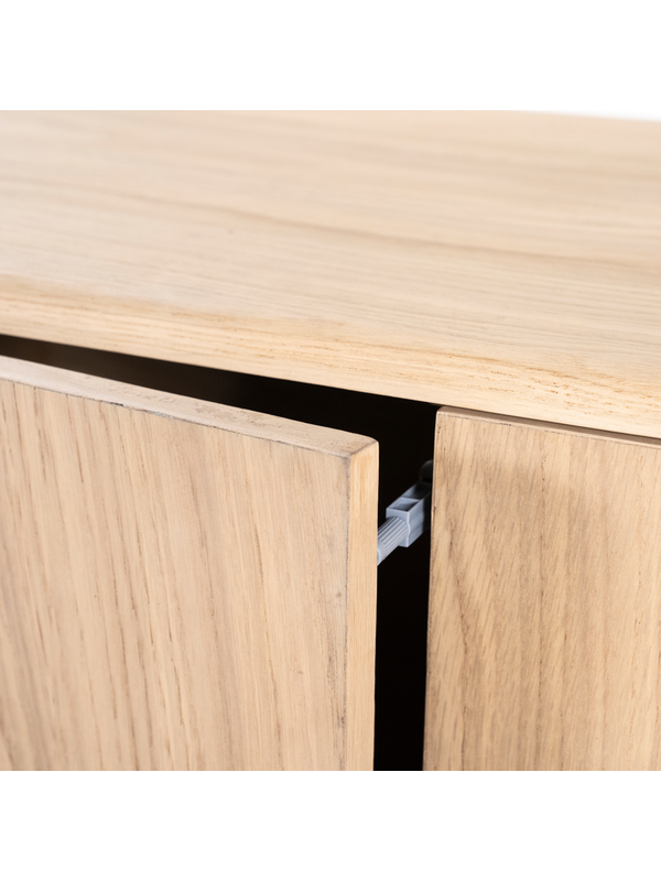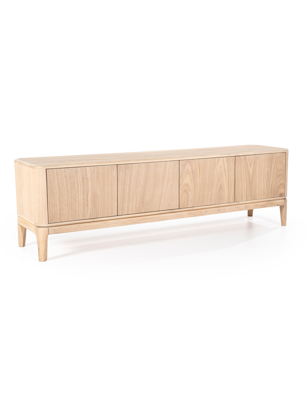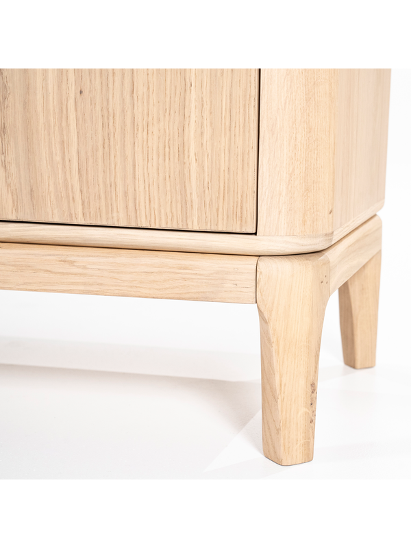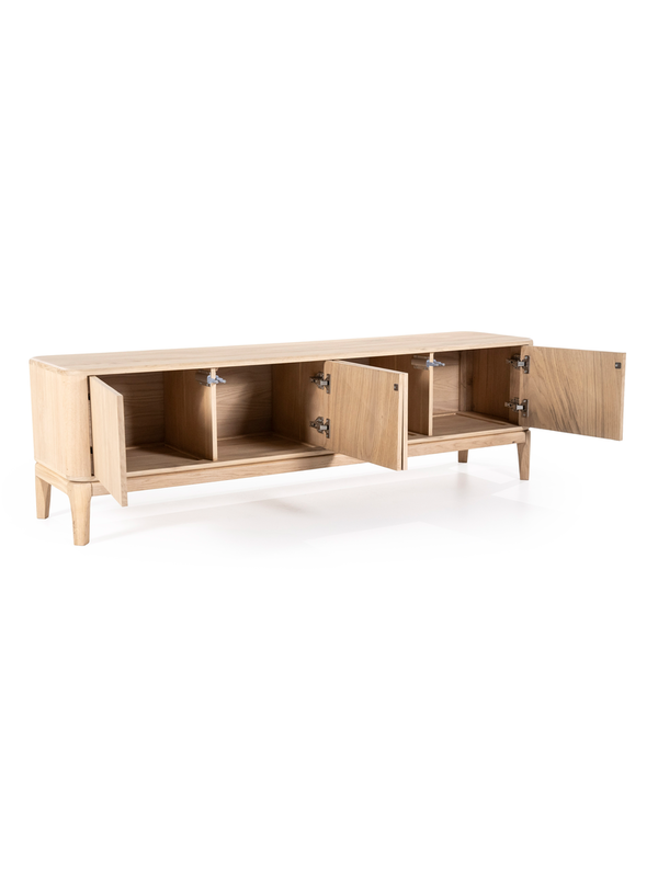 Tv-meubel Harvey van het Nederlandse merk Eleonora heeft een Scandinavisch design. Het meubel is gemaakt van eikenhout en afgewerkt met een transparante laklaag. De greeploze deuren, met daarachter vier vakken, bieden genoeg opbergruimte. De hoge poten en afgeronde hoeken geven de kast een luchtige en zachte uitstraling. Combineer de tv-meubel met de andere meubels uit de Harvey serie.