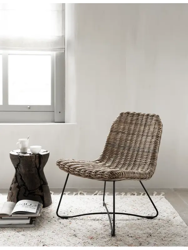 Deze luchtige fauteuil is gemaakt van kobu rotan, een rotan soort die overvloedig groeit in de weelderige tropisch regenwouden van Indonesië. Wanneer je de rotan stengels laat drogen, krijgen zij hun stoere kleur. Het kobu rotan is een robuust en hard mat
