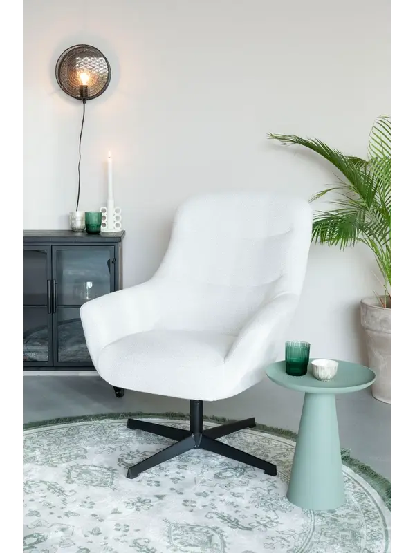 Fauteuil Swing is een heerlijke stoel waar je in wegkruipt met je lievelingsserie of -boek. De fauteuil is trendy, royaal en lekker comfortabel. Bekleed met een hippe teddystof en verkrijgbaar in twee kleuren. Met de zwarte draaivoet is de stoel niet alle